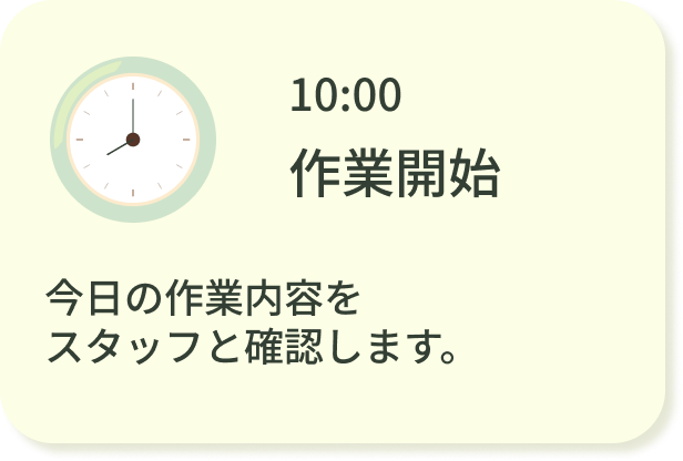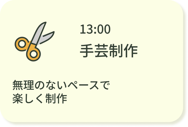 ものづくりや軽作業を中心とした活動を通じ、利用者さまが自分のペースで安心して働ける環境づくりに取り組んでいます。得意なことを活かし、できることから少しずつ挑戦することで、